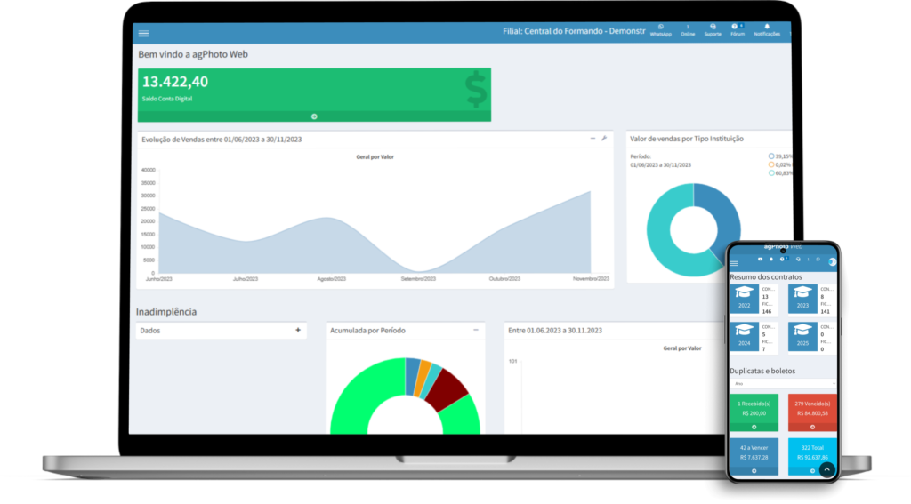 - Sincronizar e acessar os dados das vendas com o sistema AGPhoto;